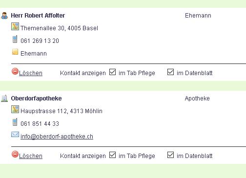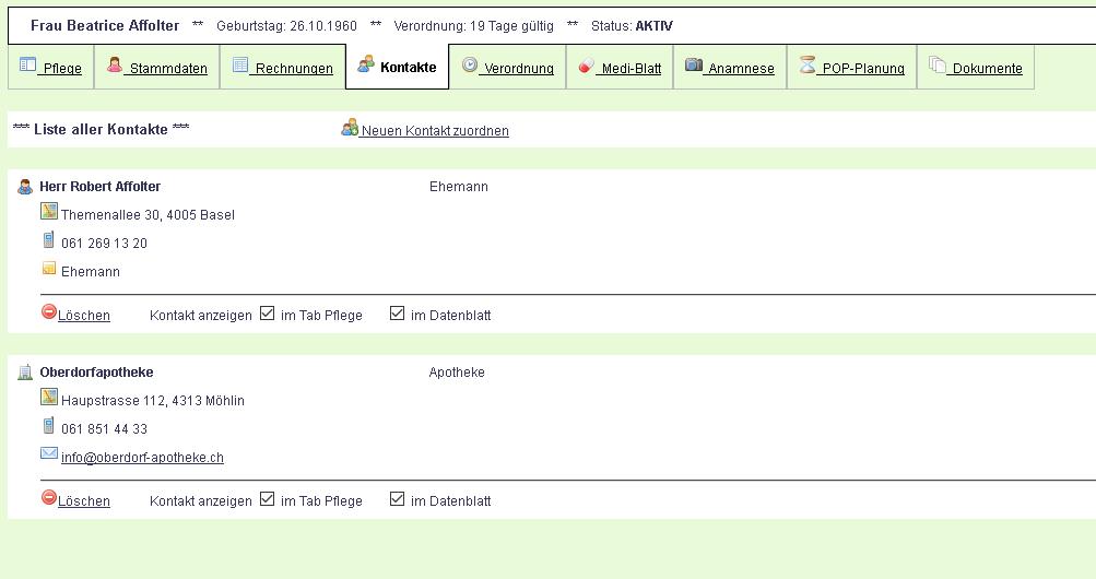 Im unteren Bereich werden alle dem Klienten zugeordneten Kontakte angezeigt.