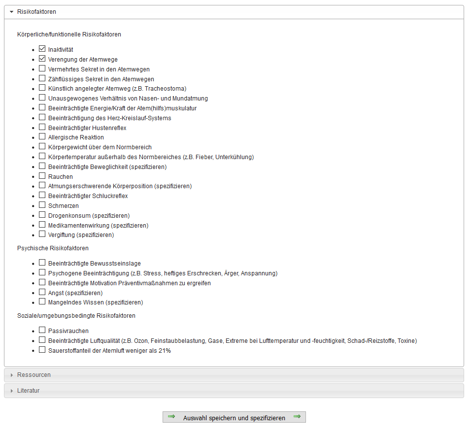 Hier können die Risikofaktoren ersfasst werden. Es ist möglcih dass man mehrere Faktoren auswählen kann. Nachdem abspeichern gelangt man zum Schritt 3.