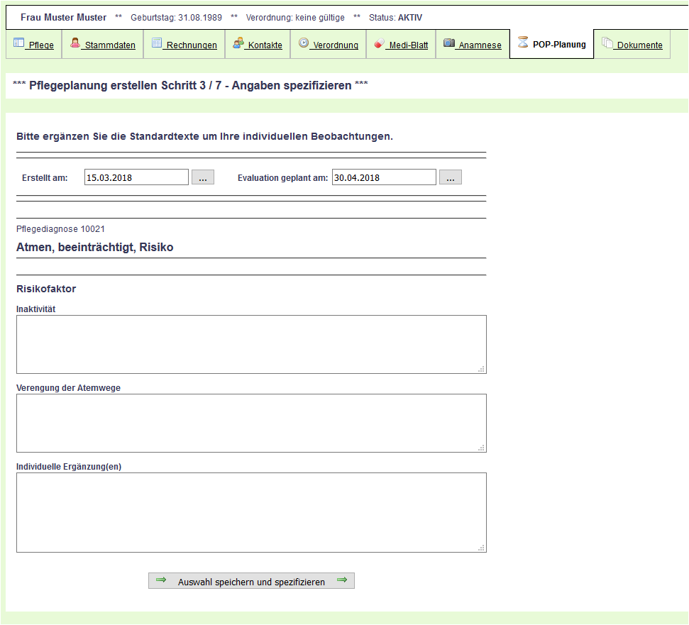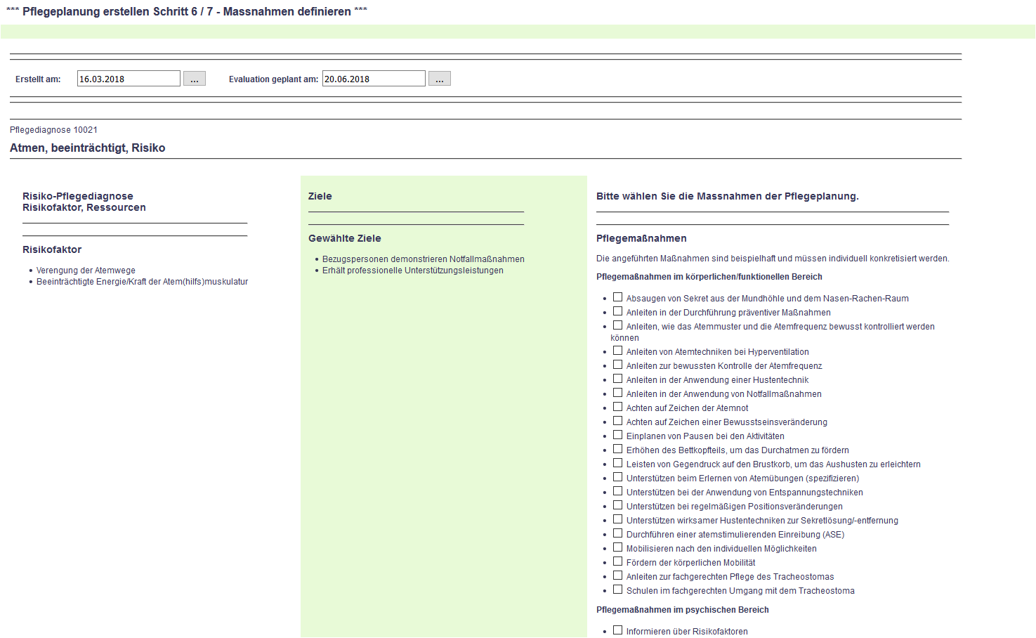 Hier werden die Pflegediagnosen erstellt und können bearbeitet werden.