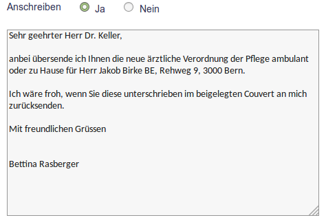 Grundsätzlich erstellt die Applikation für den verordnenden Arzt immer ein Anschreiben.
