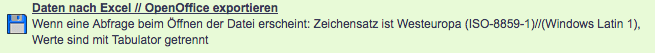 Die Liste kann exportiert werden nach Excel oder OpenOffice mit der Option am Ende der Liste.