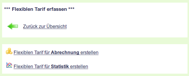 Hier kann die Auswahl getroffen werden, ob es sich um einen Flexiblen Tarif zur Abrechnung oder Statistik handelt.
