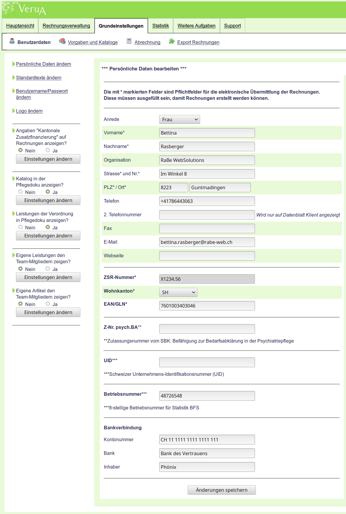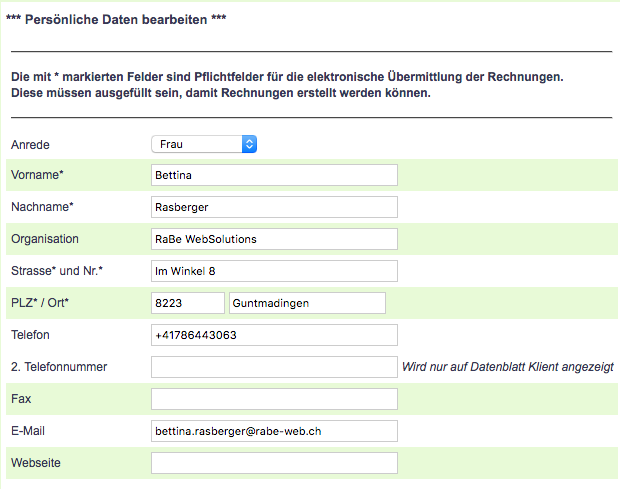 Diese müssen ausgefüllt sein, damit Rechnungen erstellt werden können.