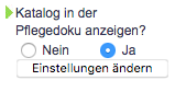 Hier kann definiert werden, ob der Katalog in der Pflegedokumentation Bereich Pflege angezeigt werden soll.