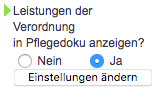 Hier kann definiert werden, ob die Leistungen in der Verordnung in der Pflegedokumentation Bereich Pflege angezeigt werden sollen.