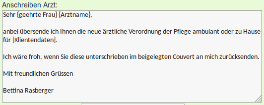 Hier ist folgender Text für das Anschreiben an den Arzt hinterlegt: