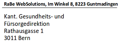 Wird hier eine Angabe gemacht, dann erscheint diese Angabe künftig auf allen Rechnungen, Anschreiben, usw. über der Adresse als Absender, anstelle des Namen der Pflegefachperson.