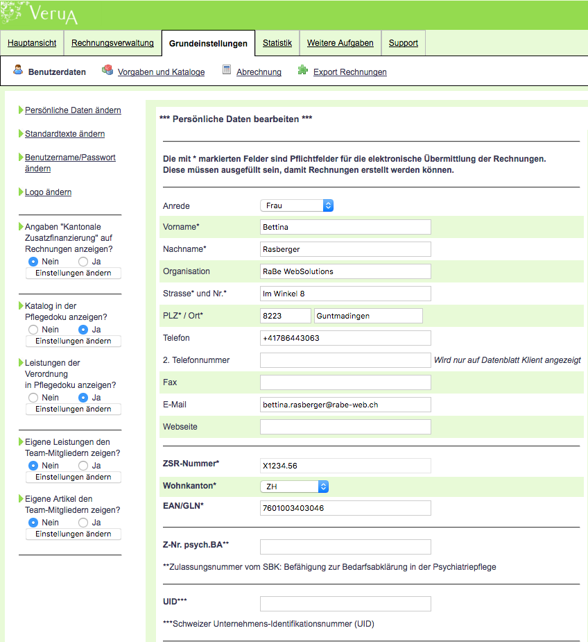 Hier befinden sich viele grundsätzliche Parameter des Systems, die individuell angepasst werden können.
