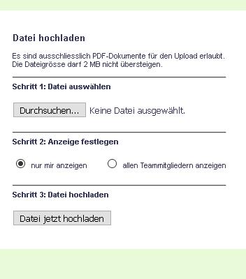Sobald das Dokument über alle nötigen Unterschriften und Genehmigungen verfügt, kann es im PDF Format eingescannt werden. Dann wird die Option „Dokument hochladen“