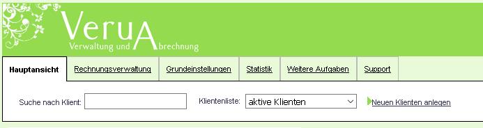 In diesem Bereich kann ein neuer Klient erfasst werden mit allen relevanten Details, die für die Administration und Abrechnung mit dem Klienten, der Krankenkasse und der öffentlichen Hand notwendig sind.