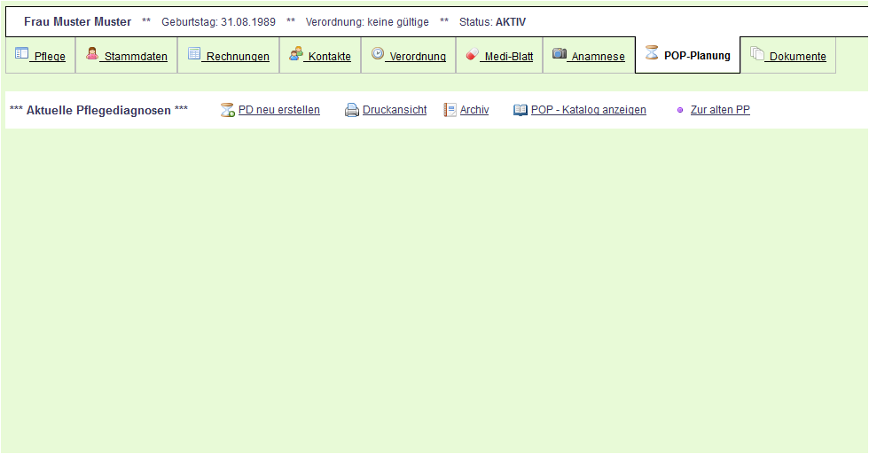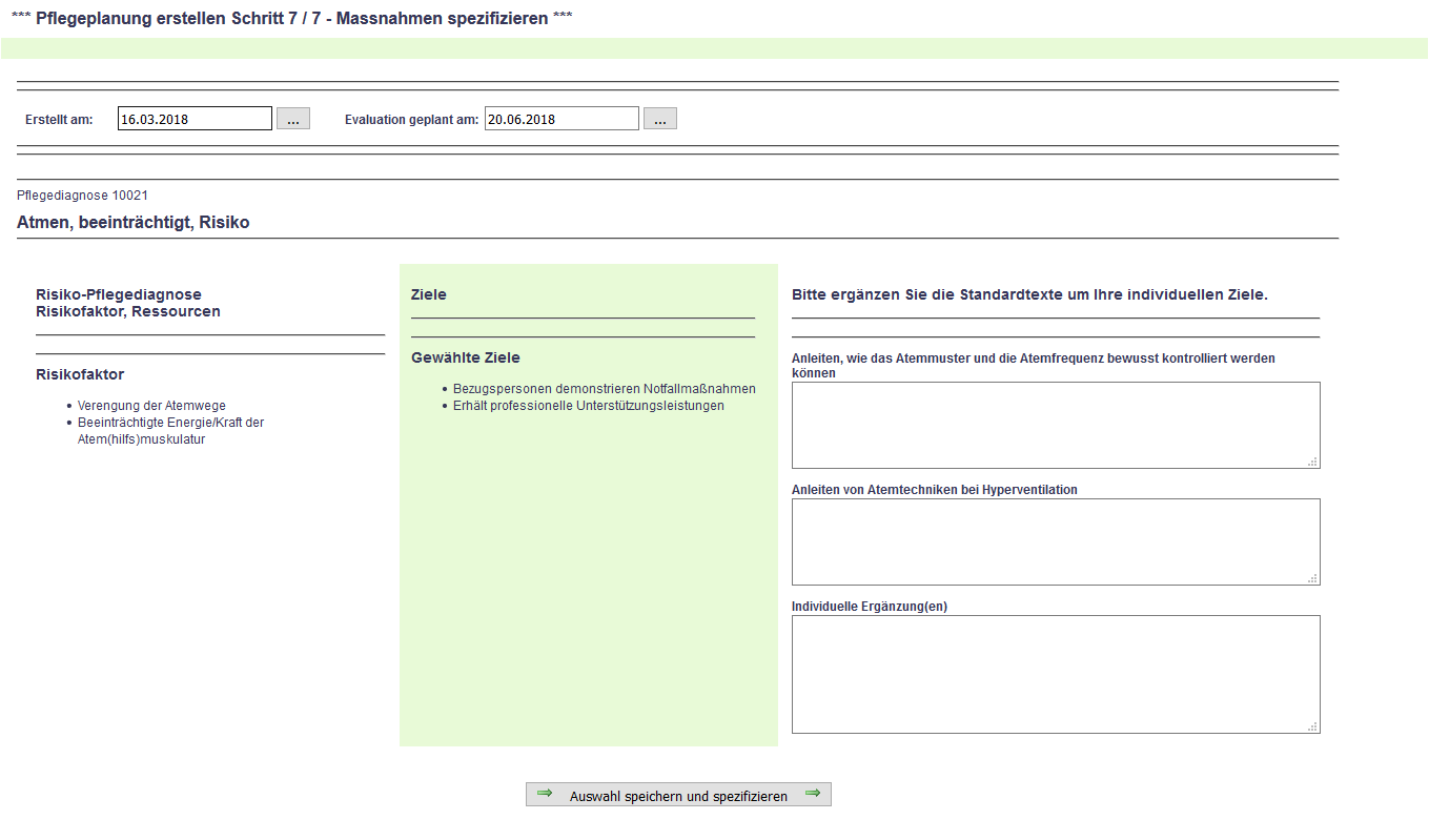 Hier werden die Pflegediagnosen erstellt und können bearbeitet werden.