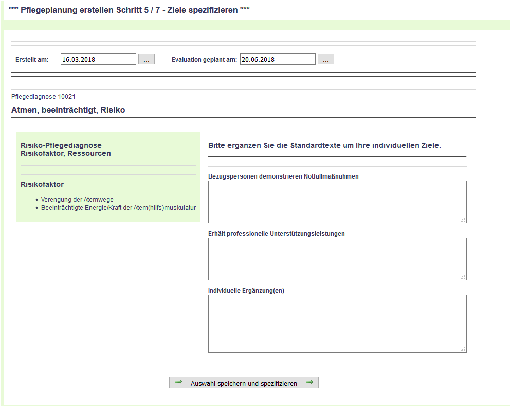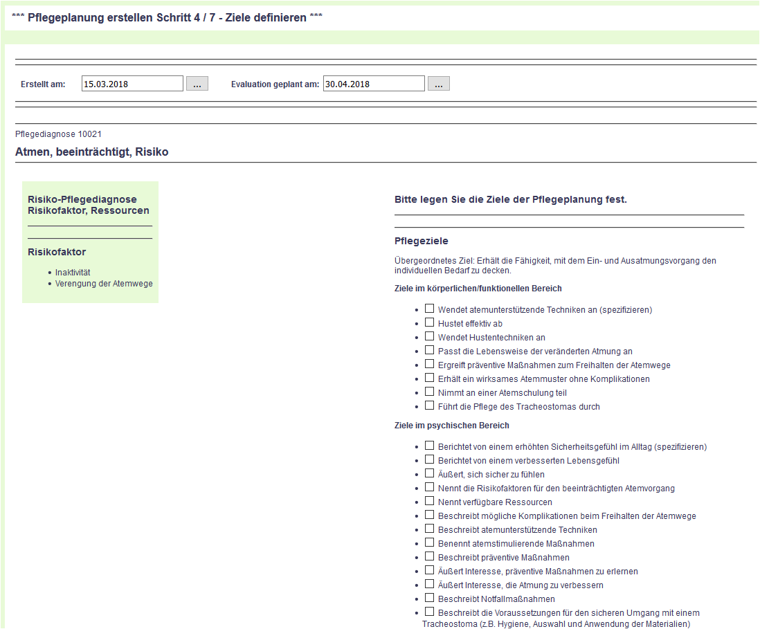 1.2 Schritt 1/7 Pflegediagnose wählen