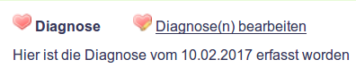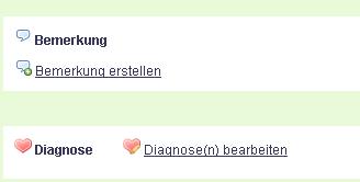 Es handelt sich ausschliesslich um ein Information zum Klienten. Erfasste Diagnosen haben keine Einfluss auf andere Bereiche der Applikation.