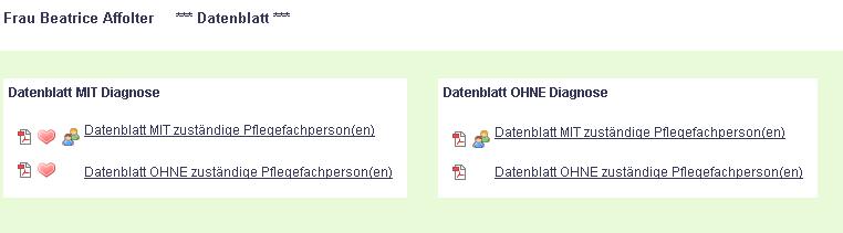 In der Team-Version besteht noch die Möglichkeit, dass alle an der Pflege beteiligten Pflegefachpersonen aufgeführt werden. Wählen Sie hierfür die Option Datenblatt MIT zuständige Pflegefachperson(en).