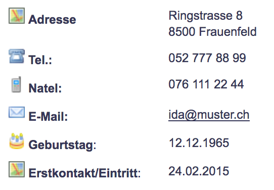 Wenn eine Angabe in den Klientendaten fehlt, so wird das entsprechende Symbol und der Name hier nicht angezeigt.