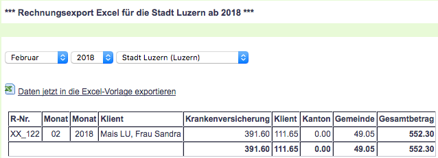 Die Stadt Luzern verlangt von den Freiberuflichen Pflegefachpersonen für die Abrechnung der Restkosten eine genau definierte Exceltabelle. Diese haben wir nun in VeruA als Export zugänglich gemacht. Es vereinfacht die Handhabung dieser Anforderung erheblich.