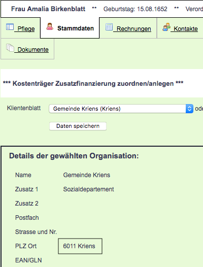 Die verfügbaren Kostenträger werden dann direkt angezeigt und können ausgewählt werden.